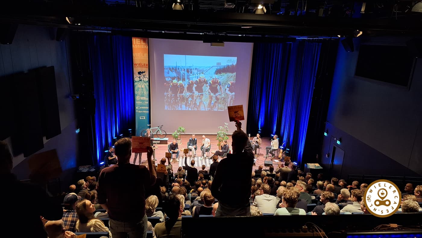 Interviews wisselen deze avond af met foto’s, video’s en de fameuze wielerquiz. Wielerdichter Joost Hontelez draagt voor uit zijn boek Tête de la course, die vorig jaar uit kwam.