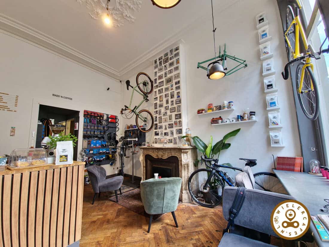 Vanaf het station is het 250 meter fietsen, voordat we bij wielercafé Bikes ’n Coffee zijn. Vooraf wilde ik checken of het open was. De website van de zaak deed het niet en het mobiele nummer werd in eerste instantie niet opgenomen. Later wel. Ik had op een druk moment gebeld.