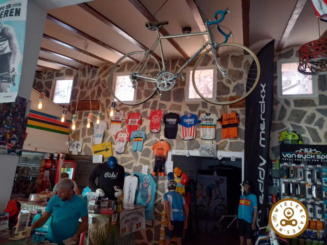 Eenmaal gevonden is het gelijk duidelijk dat het om een wielercafé gaat. Velosol ademt wielrennen. Er hangen oude shirtjes, er staan retro fietsen en je ziet tientallen of honderden andere wieler pluralia. Pronkstuk is de wereldkampioenstrui van Mathieu van der Poel, persoonlijk door hem overhandigd.