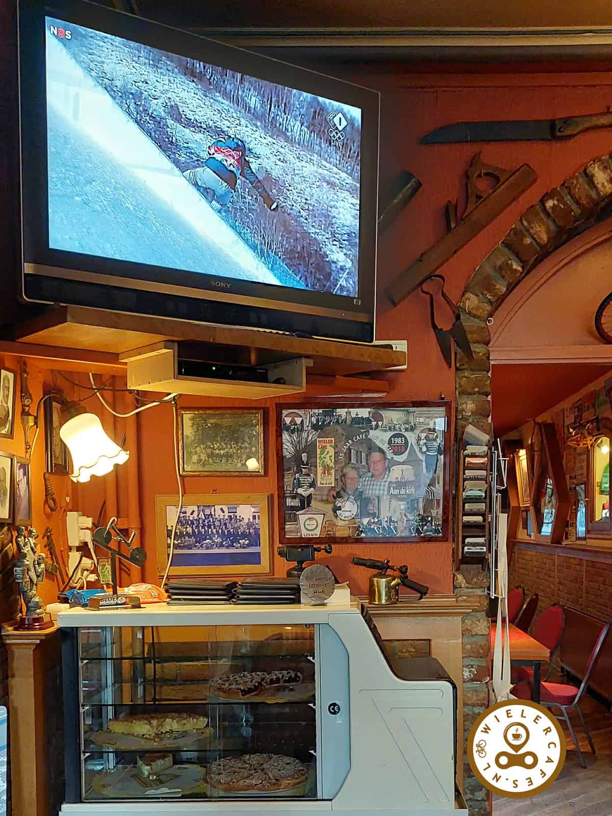 Wie door het prachtige Heuvelland fietst komt altijd in de buurt van Café Aan de kirk. Als kloppend hart van het dorp Sibbe vind je binnen in dit Limburgse wielercafé vele trofeeën, foto’s, kampioenstruien en andere attributen die herinneren aan de wielergeschiedenis die dit café rijk is.
