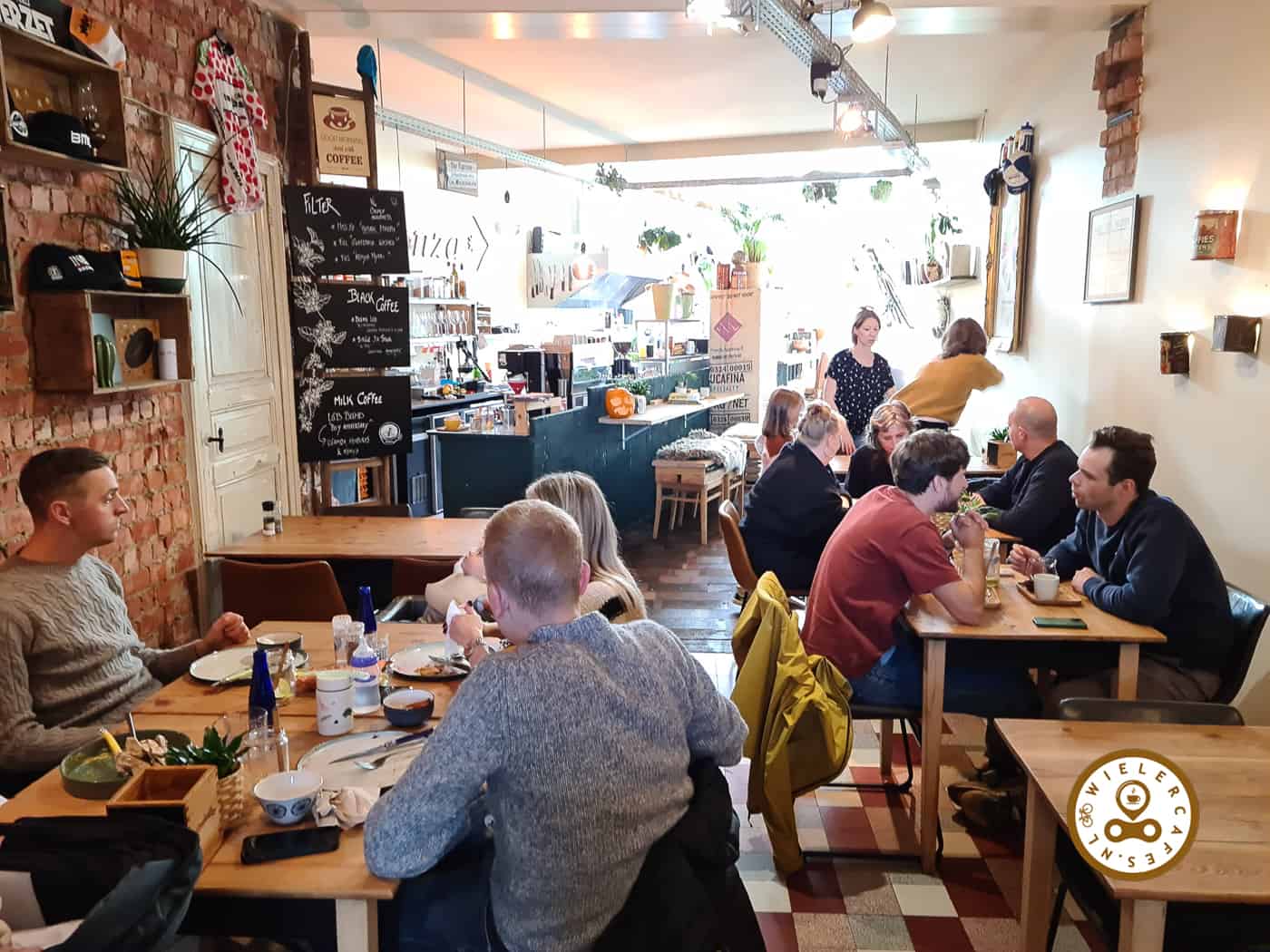 Binnen is het knus, heerlijk sfeervol en is er ruimte om drie koersfietsen te stallen. Door de combinatie van warme sfeer, verrukkelijke koffie en goede maaltijden komen hier ook geregeld profwielrenners op bezoek. Zeker tijdens het voorjaar wanneer de Vlaamse wielerklassiekers verreden worden, die je hier uiteraard live op scherm volgen. Verwacht ook diverse andere wielerliefhebbers, want menig amateur en lokaal talent weet het wielercafé in Deinze al te vinden.