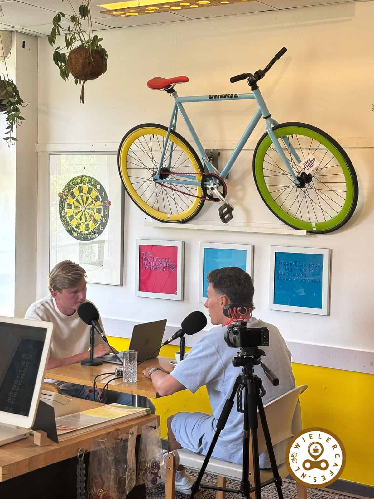 Ter ere van het NK in Ede kwam oud profwielrenner en eigenaar van wielercafé Chur (Alkmaar) Ramon Sinkeldam samen met Lars van den Berg op bezoek bij Anderhalf Bar in Ede. Voor hun podcast en YouTube-kanaal ‘Beyond the KOM’ namen ze een podcast op die inmiddels hier online staat. De video op YouTube kan de komende week ook worden verwacht op hun kanaal.