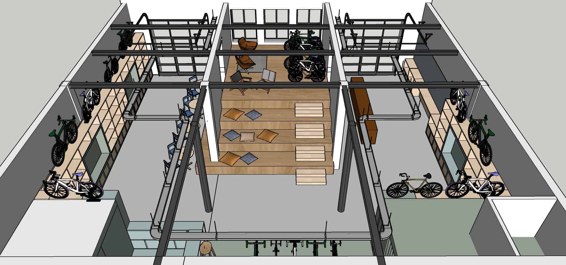Hun oog viel op een zeer ruim pand in de Tweede Havenarm van het Havenkwartier in Deventer. Met 225 vierkante meter en een hoog plafond voelt ’t wielercafé bijzonder ruimtelijk aan. Tel daar een heerlijke vloerverwarming bij op en je hebt een heerlijke locatie voor zowel fietsritten in de zomer als in de winter.